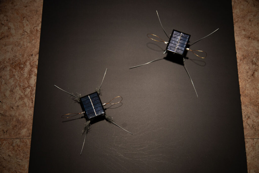 [EN] Créatures I (2024) is a duo of of small autonomous electronic beings, powered by solar energy. Each creature is built following the BEAM methodology (Biology, Electronics, Aesthetics, Mechanics), integrating as few electronic components as possible. Despite their kinetic simplicity, they evoke life, inviting a reflexion on the nature of the notion “life” itself.