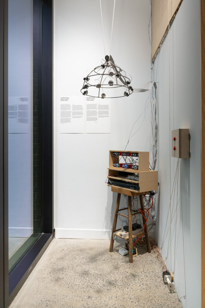 Here, the exhibition space is considered as a more-than-human being – meaning it is an entity made of multiple elements (alive or not) in continual interaction. Through the valorisation of its acoustic subtleties, the work highlights the place’s vitality and asks that the audience recognizes it not as a simple empty container but as an animate entity in its own right. The dome’s open structure et the unhiding of the device’s hardware are thought out as aesthetic choices reinforcing one of the project’s premises: to bring forward things we don’t normally see or perceive.